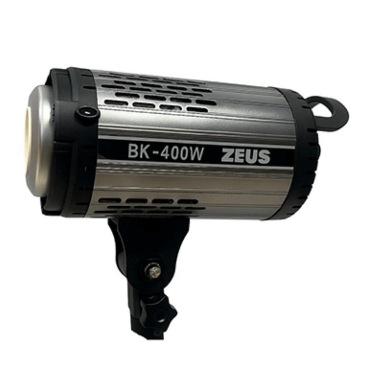 نور ثابت زئوس مدل BK-400W با قدرت 400 وات واقعی و بدنه کاملا تمام فلزی، دارای 2 رنگ ( کلوین 6800 - 2800 ) می باشد. این دستگاه امکان استفاده از تمام حالت دهنده های نور ( سافت باکس ، اکتا باکس ، کاسه، اسنوت و ... ) را فراهم میکند. از ویژگی های دیگر دارای صفحه نمایشگر دارای ریموت کنترل و دارای فن خنک کننده است.