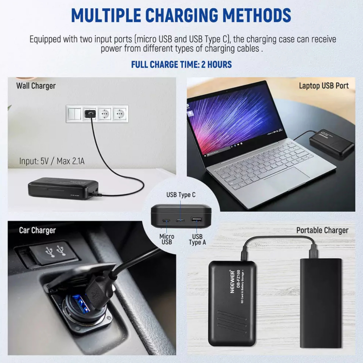 کیت شارژر و باتری نیور NEEWER DB-FZ100 ، یک مجموعه کامل برای عکاسان و فیلمبردارانی است که از دوربین های سونی استفاده میکنند.این کیت شامل یک شارژر دوبل که به عنوان پاور بانک نیز میشود از آن استفاده کرد ، و شامل ۲ عدد باتری NP-FZ100 می باشد.